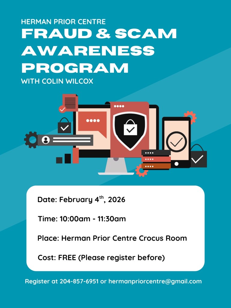 Join us on February 4th at 10am for a FREE fraud and scam awareness program. Please register before at 204-857-6951